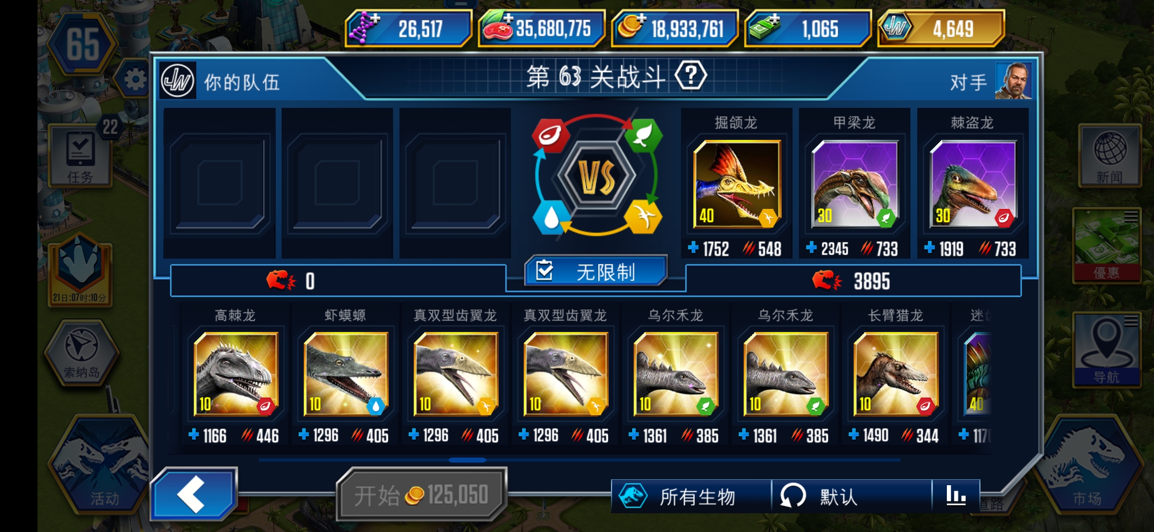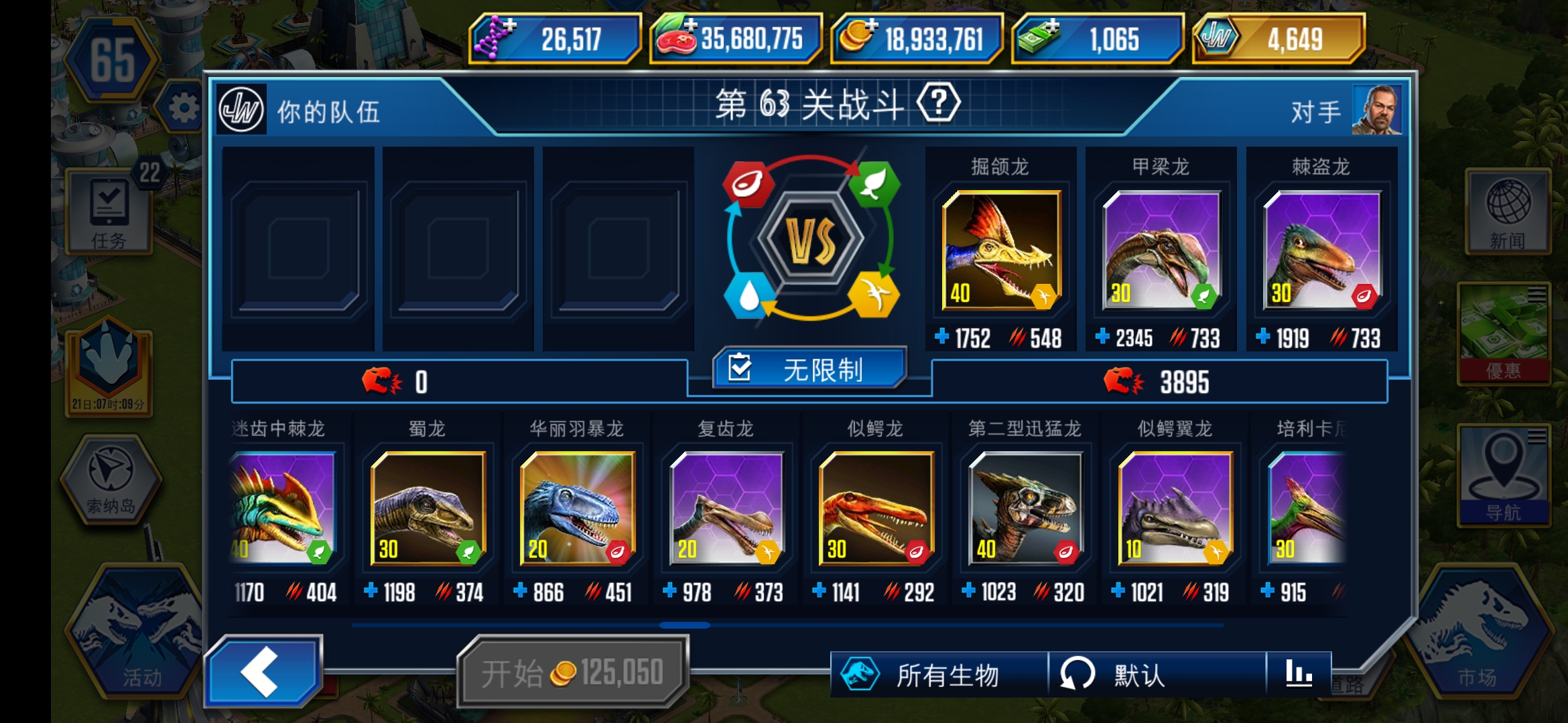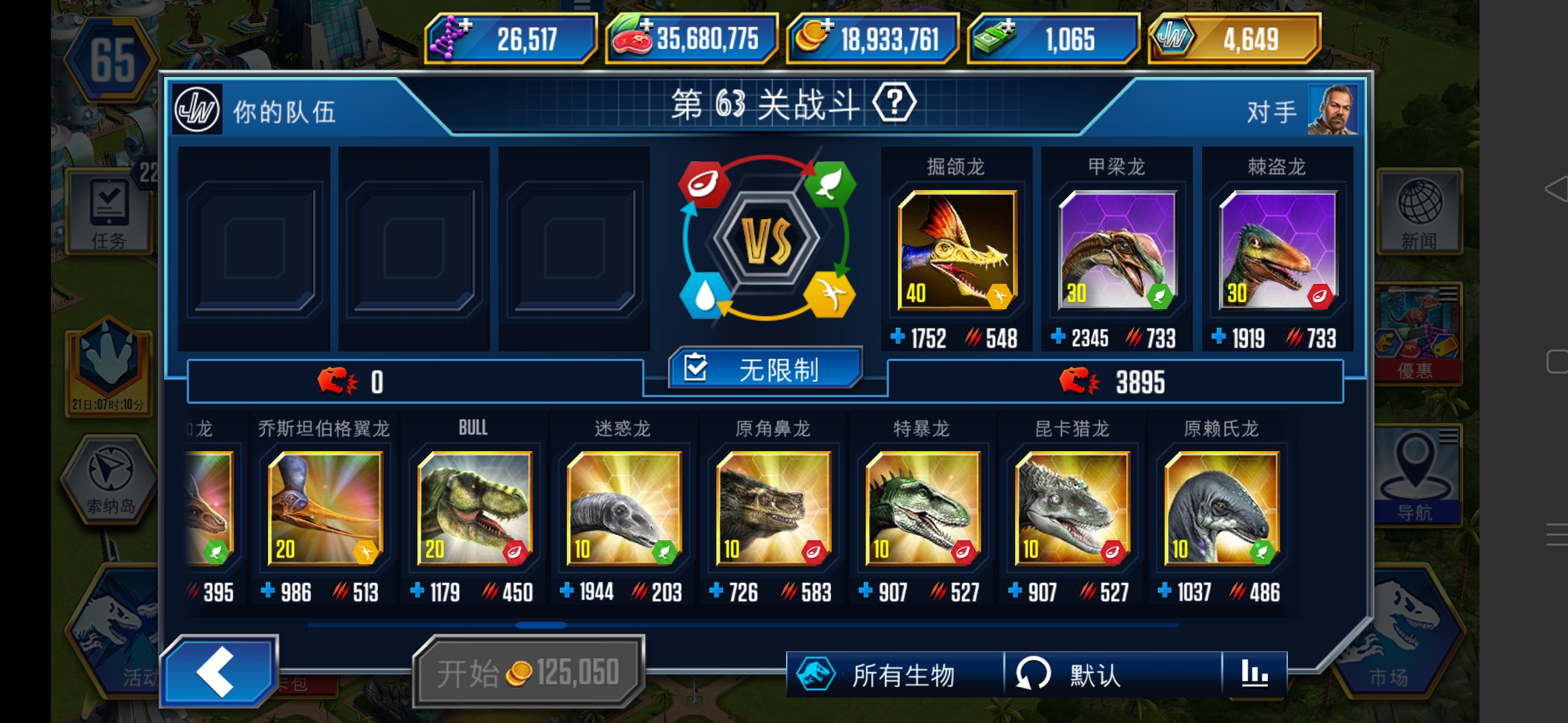 慢慢搞,现在你要保证自己不怕其他两个馆的锦标赛了,陆生恐龙的话,四个种类也都要有一定数量(有指定单个品种的锦标赛),凶残性都尽量保留在2000用来打锦标赛,如果遇到比较难的特别活动 再拉一些上去