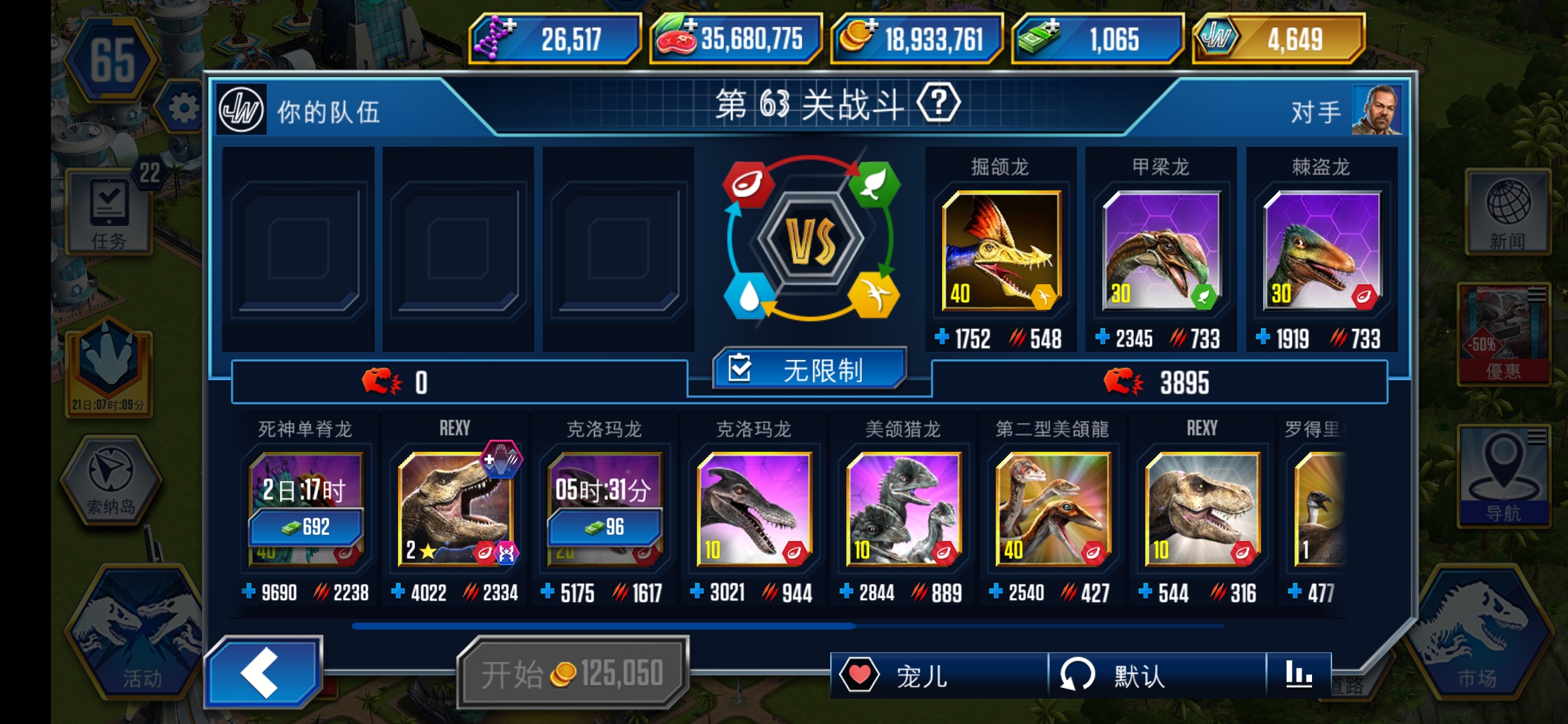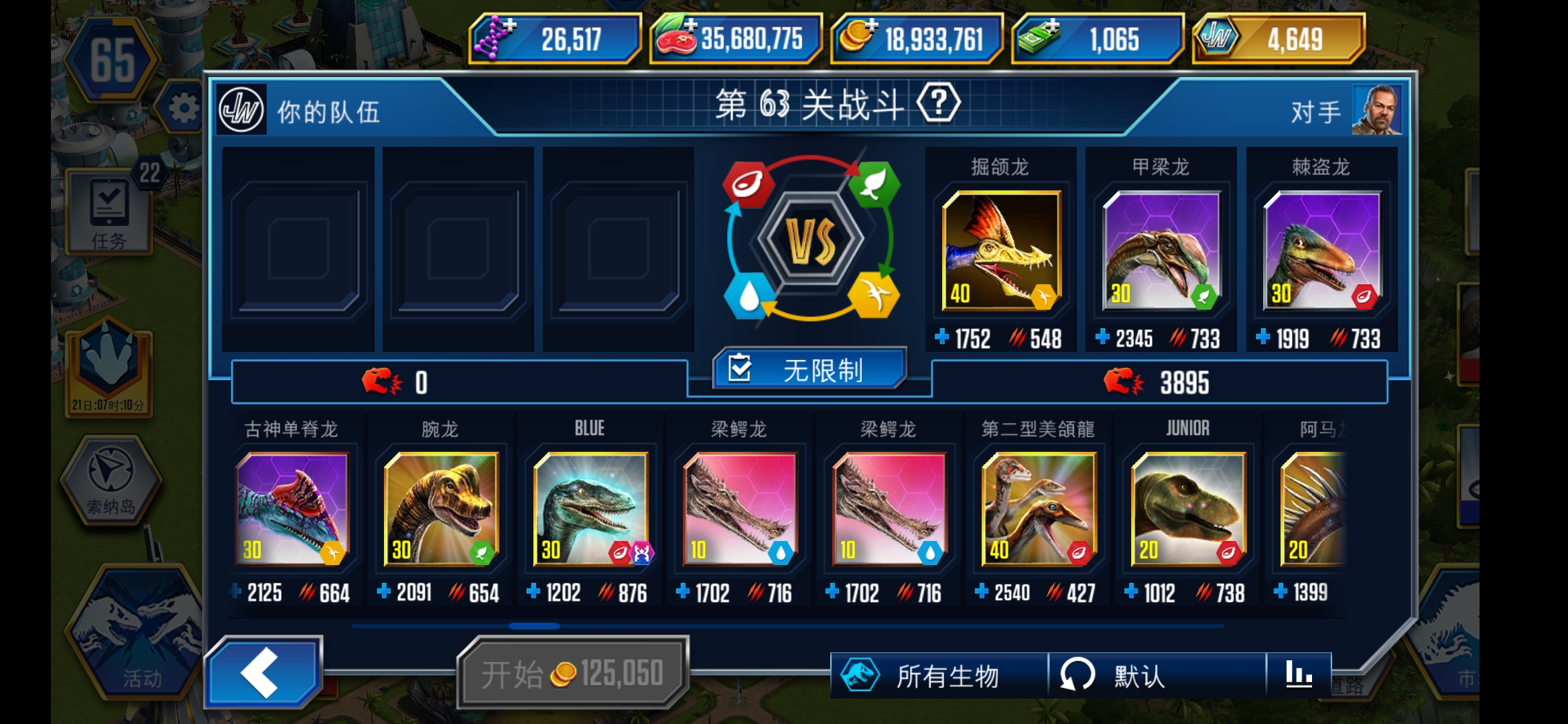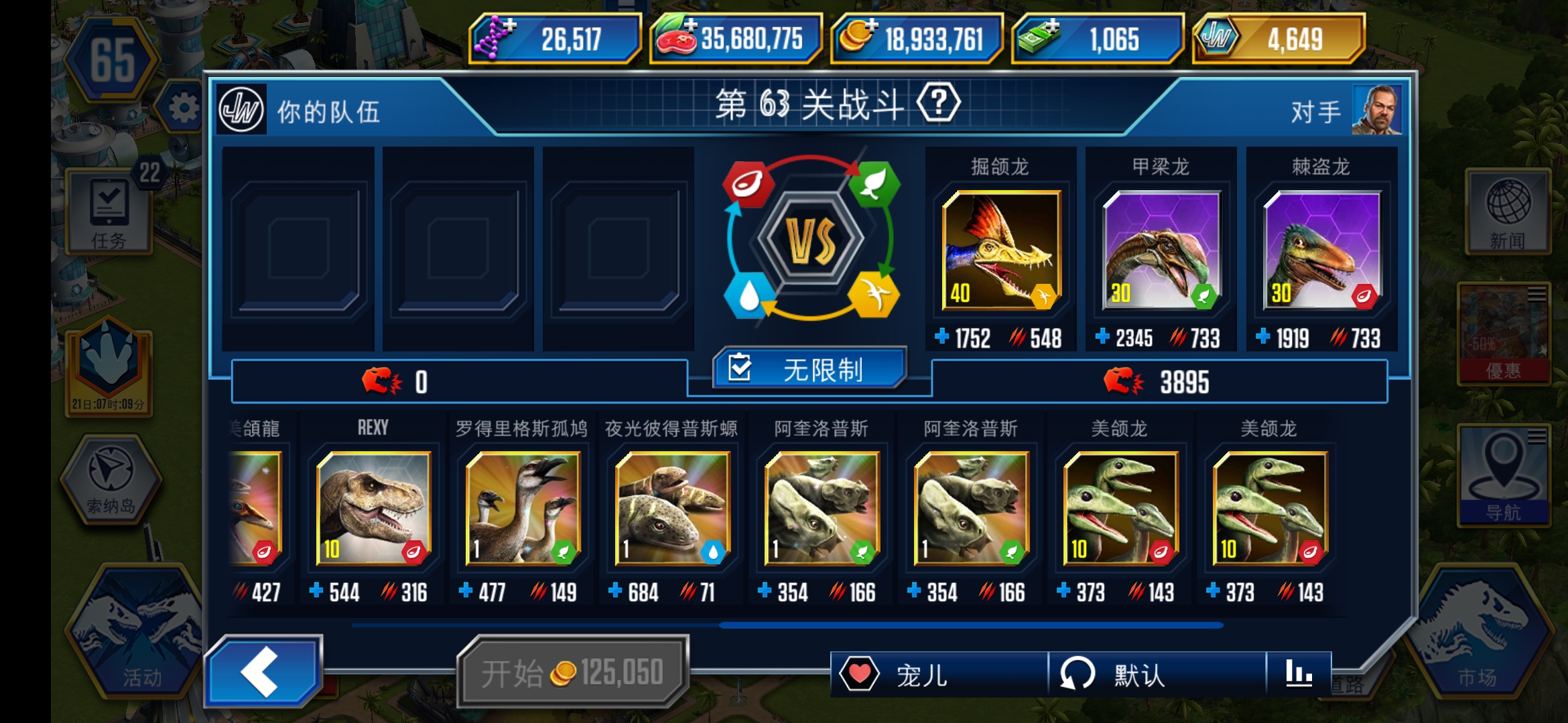 慢慢搞,现在你要保证自己不怕其他两个馆的锦标赛了,陆生恐龙的话,四个种类也都要有一定数量(有指定单个品种的锦标赛),凶残性都尽量保留在2000用来打锦标赛,如果遇到比较难的特别活动 再拉一些上去