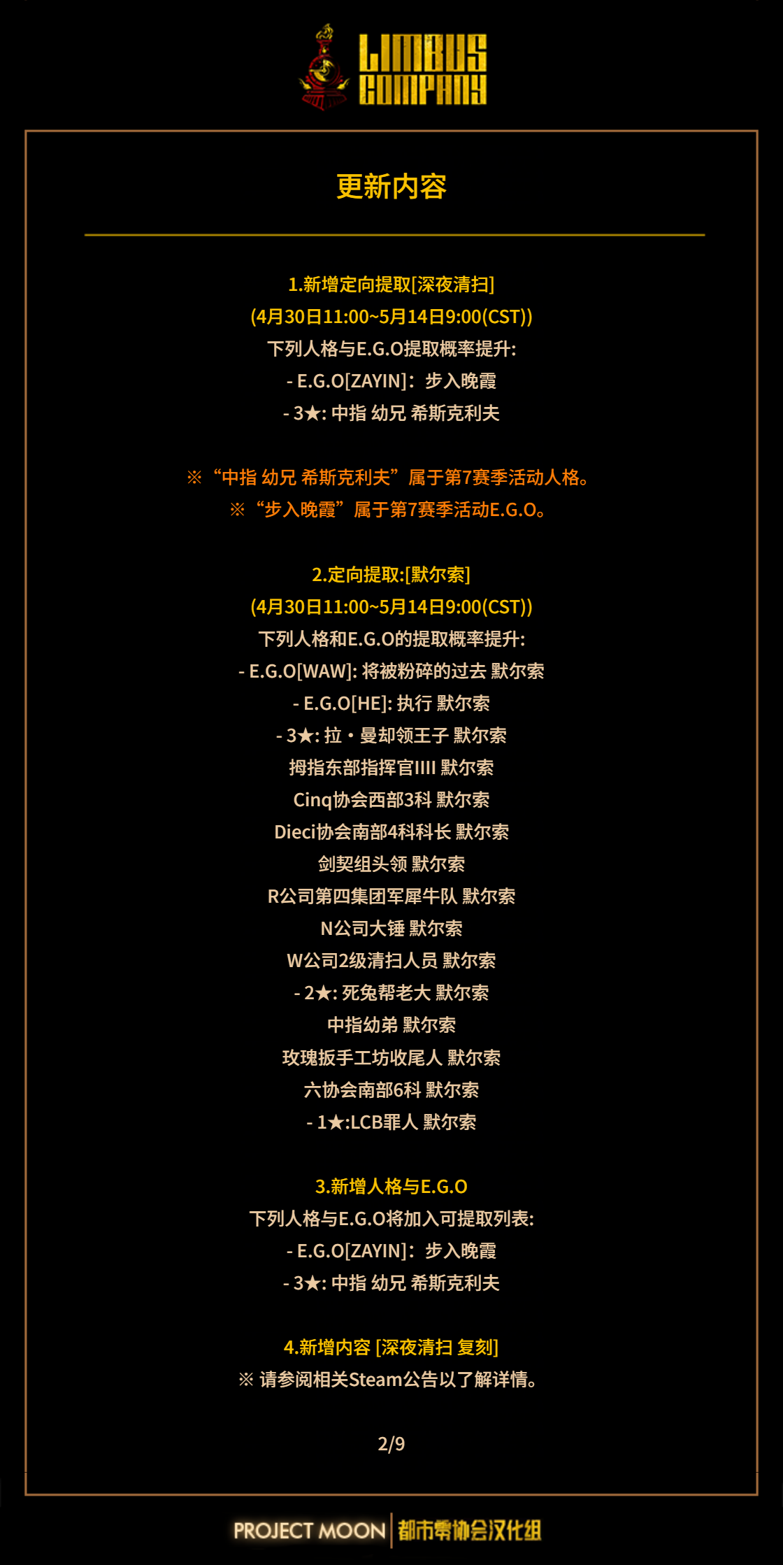 【边狱巴士】更新内容前瞻 中指-幼兄-希斯克里夫/朱红蛾群EGO-罗佳